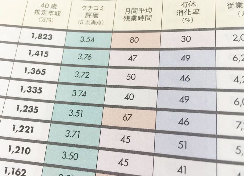 3.5点という基準は、私見ではかなり高い水準だと感じた。たとえば記事のなかには「高給与なホワイト企業ベスト20」というランキングもある。ここで1位の三菱地所のクチコミ評価は3.52点、2位の生化学工業は3.07点、3位の日本たばこ産業は3.36点となっている。