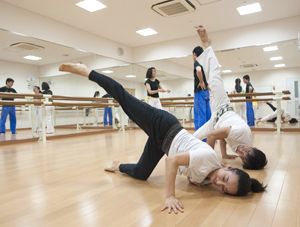 え? いまなんつった? オロオロしていると、周りの人たちはこともなげに地面に這うような体勢で、身体をふわっと持ち上げた。突然のアクロバティックな動きにたじろぐ。が、先生に一つ一つ動きを教えてもらうと、あら不思議。たしかに身体が浮いた。この辺からうっすら気づき始めた。もしかしてカポエイラってハード?