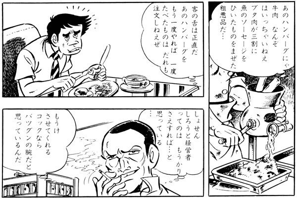 「客の舌は正直だ。あのハンバーグをもう一度やれば一度食べたものはだれも注文しねえぜ」
