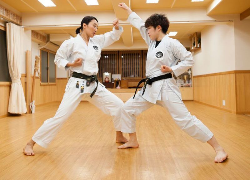 空手には大きく分けて、相手に当たる直前に攻撃を止める(寸止め)「伝統派空手」と実際に突きや蹴りをぶつけ合う「フルコンタクト空手」があるそうだ。さらに伝統派空手には、松濤館(しょうとうかん)流、剛柔(ごうじゅう)流、糸東(しとう)流、和道流という4大流派があり、流派によって形(かた)も異なる。高橋さんが教えているのは、最大流派である松濤館流の空手だ。