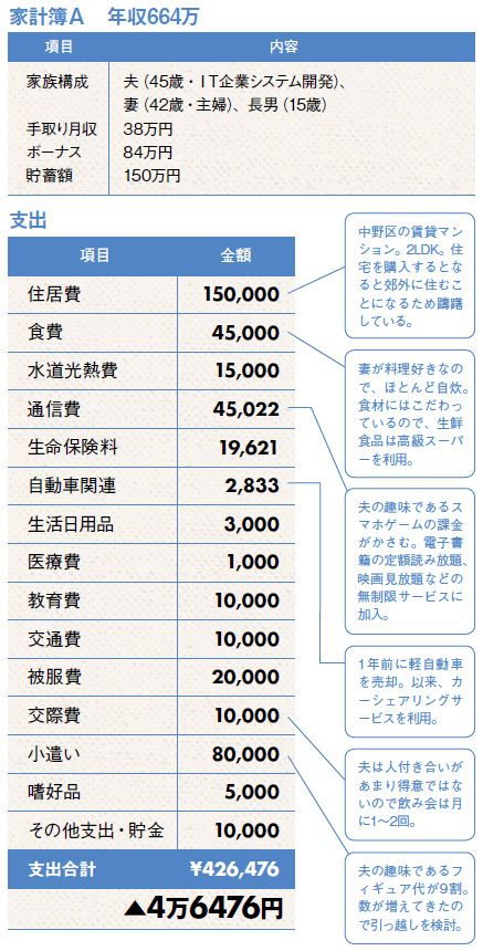 ──(プレジデント編集部)本日は、忌憚のないご意見をお願いします。まずはAさんの家計簿です。夫と妻、長男の3人家族。小遣いが高い印象です。