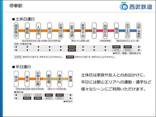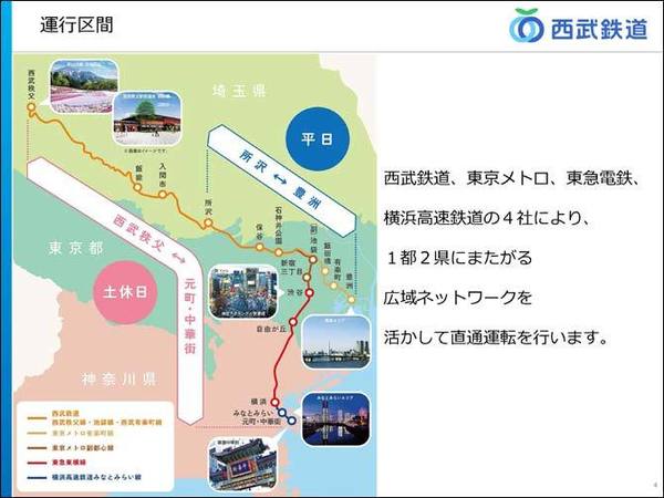 西武鉄道では副都心線直通運転が始まった2008年から有料座席指定列車の地下鉄乗り入れを構想していたという。東急東横線の乗り入れは2002年に決定済みだった。ゆえに横浜方面の乗り入れも視野に入れていた。