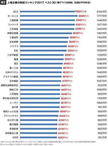 一方、Vorkers 調査の「上場企業の時給ランキング」を見ても、制御・計測機器の営業職が数多く在籍するキーエンスが2位(時給:6548円、平均年収:1777万円)に輝いている。