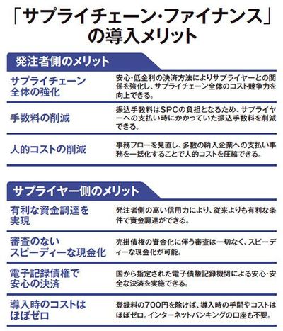 【小倉】「POファイナンス」は電子記録債権を活用して“発注書”を債権化し、サプライヤーが受注段階で金融機関から融資を受けられるようにする仕組みです。例えばレオパレス21さんのような優良企業からの発注なら、信用保証協会の保証(準備中)により、サプライヤーは発注額の50%まで融資が受けられる見込みです。融資にあたっての審査や事務のコストダウンも可能。この取り組みは中小企業の経営力強化に役立つとされ、中小企業庁が委託する次世代企業間データ連携調査事業の実証プロジェクトにも採用されました。