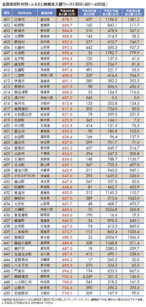 ふるさと納税受入額ランキング #ふるさと納税 2017/07/25 9:00 #1 #2 「ふるさと納税受入額」全国ワースト500 「受入額ゼロ」3自治体の言い分 PRESIDENT Online プレジデントオンライン編集部 +フォロー 前ページ 1 … 8 9 10 11 12 次ページ 次ページ 1 … 8 9 10 11 12 関連記事 "地方公務員年収推計"都道府県ランキング 東京より幸せ「地方の給与1位企業」20社 なぜ神戸市の水道光熱費は日本一安いのか ランキング 1位 高市首相の「脱中国」戦略はやはり正しかった…中国に媚びて「移民とEV」の泥沼に沈んだドイツの末路 ランキングをもっと見る マネー #ふるさと納税