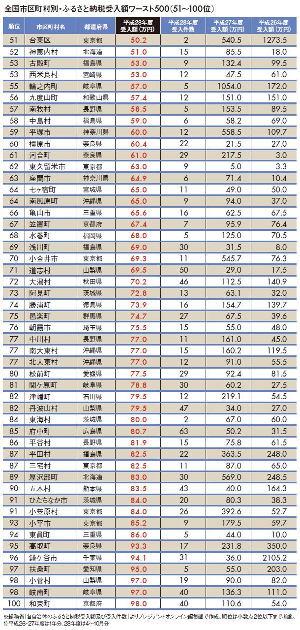 ふるさと納税受入額ランキング #ふるさと納税 2017/07/25 9:00 #1 #2 「ふるさと納税受入額」全国ワースト500 「受入額ゼロ」3自治体の言い分 PRESIDENT Online プレジデントオンライン編集部 +フォロー 前ページ 1 2 3 4 5 … 12 次ページ 次ページ 1 2 3 4 5 … 12 関連記事 "地方公務員年収推計"都道府県ランキング 東京より幸せ「地方の給与1位企業」20社 なぜ神戸市の水道光熱費は日本一安いのか ランキング 1位 中国は81%で世界一高く、日本は34%で世界一低い…両国の人間性・価値観が180度違う事を決定づけるデータ【2025年12月BEST】 ランキングをもっと見る マネー #ふるさと納税