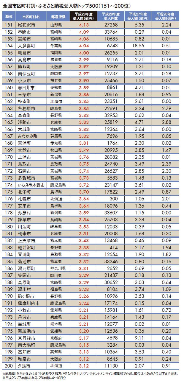 ふるさと納税受入額ランキング #ふるさと納税 2017/07/26 9:00 #1 #2 「ふるさと納税受入額」全国トップ500 1位は「肉と焼酎」、2位は「家電」 PRESIDENT Online プレジデントオンライン編集部 +フォロー 前ページ 1 … 5 6 7 … 12 次ページ 次ページ 1 … 5 6 7 … 12 関連記事 「ふるさと納税受入額」全国ワースト500 "地方公務員年収推計"都道府県ランキング 東京より幸せ「地方の給与1位企業」20社 ランキング 1位 1回10分・室内でもできる…整形外科医が「姿勢も血流もよくなる」と勧める"肋骨ウォーキング"の効果【2026年1月BEST】 ランキングをもっと見る マネー #ふるさと納税