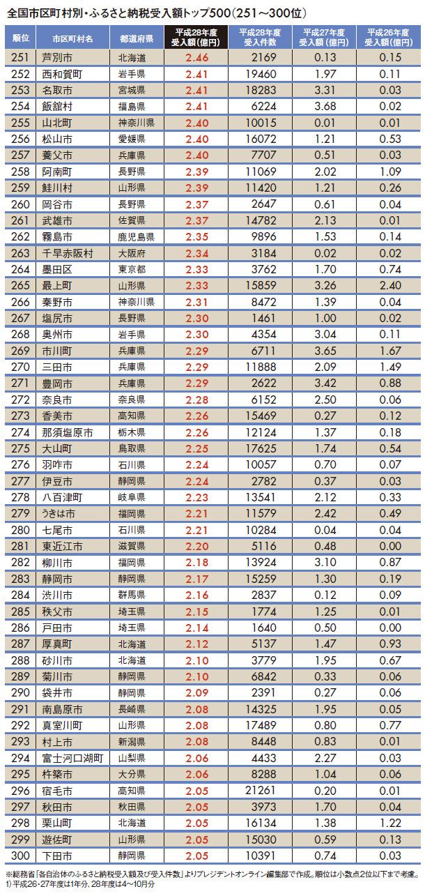 ふるさと納税受入額ランキング #ふるさと納税 2017/07/26 9:00 #1 #2 「ふるさと納税受入額」全国トップ500 1位は「肉と焼酎」、2位は「家電」 PRESIDENT Online プレジデントオンライン編集部 +フォロー 前ページ 1 … 7 8 9 … 12 次ページ 次ページ 1 … 7 8 9 … 12 関連記事 「ふるさと納税受入額」全国ワースト500 "地方公務員年収推計"都道府県ランキング 東京より幸せ「地方の給与1位企業」20社 ランキング 1位 「男性だらけの会議」では絶対に気づかない…女性自衛官が災害現場で真っ先に提案した“2つの生活必需品” ランキングをもっと見る マネー #ふるさと納税