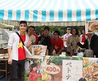 大学祭では各国からの留学生が模擬店で自国の料理を披露する。