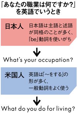 「日本人は、物事を日本語で考え、それを英語に置き換えようとします。和文は、『私は教師です』というように、主語と述語が同格のパターンが中心。そのため、たとえば『あなたの仕事は何ですか』という質問文の場合、『What's your occ upation?』といった具合に『be動詞』を使って英訳しがちです。ところが、英文は一般動詞が中心なので、『What do you do for living?』というように『do』を使うのがふつう。ネイティブにも通じる表現をするには、英語の発想に慣れるしかないでしょう」