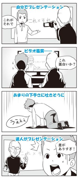 まずは自分が「いかに下手か」を知ること。自分のプレゼンテーションが「どんなにつまらないか」を知ること。すべてはそこから始まります。自分の姿をビデオで見て「こりゃあ、ダメだ」と思ったのなら、大丈夫です。そこにはそう感じたセンス(観察眼や感受性)があり、向上心が芽生えるから。私自身の原体験もそこにあります。