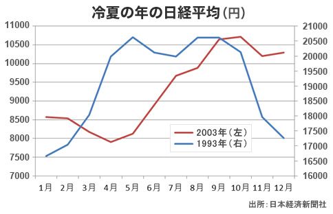 実際、93年の景気回復初期局面においては、年前半の経済指標が改善したことなどを根拠に、株価は3月以降堅調に推移していたが、6~7月と9月以降、株価は軟調に推移した。円高や冷夏に伴う経済指標の悪化が確認されはじめたことなどが影響している。このように、冷夏が株式市場に及ぼす影響にも十分注意が必要だろう。