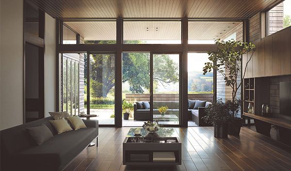 第一に「高断熱なのに大開口」を可能にしたこと。一般に、窓は断熱の弱点になりがちだが、「センチュリー プリモア」はミサワホームオリジナルの高断熱サッシ「AZサッシ」を採用。開放感のある幅6メートルの大開口と、標準仕様でZEH(ネット・ゼロ・エネルギー・ハウス)基準に対応する断熱性を両立した。戸外の景色を満喫しながらも、戸外の気温差には影響されにくい、居心地の良い空間が実現した。