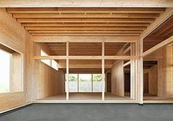 この高性能な建物を裏付けるのは、新開発の構法「センチュリーモノコック」。1枚1枚が高い強度を持つ木質パネル同士を、強力な高分子接着剤とスクリュー釘で面接合。ジェット機などと同じ一体構造(モノコック構造)で、あらゆる方向からの力を建物全体で受けとめ、分散する。さらに、従来の90ミリ厚の木質パネルに加え、南極昭和基地の居住棟と同じ120ミリ厚の木質パネルを採用し、より高い強度と断熱性を兼ね備えた、“未来基準”の構造とした。