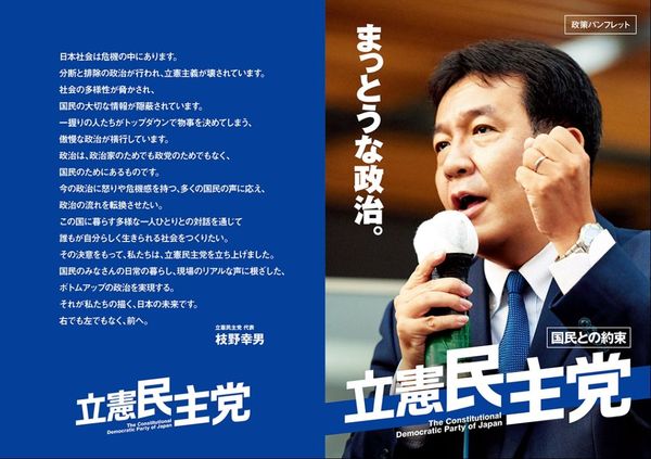 民主党の流れをくむ立憲民主党。代表の枝野幸男氏は、一連の民主党マニフェストづくりにも幹部としてかかわってきた。その先入観を持って公約をみると、かつての民主党のマニフェストとは随分違うことに気づく。