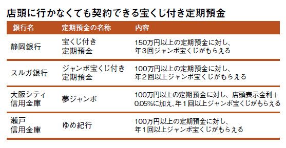 調べてみると、スルガ銀行ではすでに11人もの億万長者が出ている。ほかにも、わざわざ神社で当せん祈願を行ったり、有名な売り場で購入したりする銀行もあるようだ。金利が低い今こそ注目したい金融商品だといえるだろう。