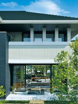 独自の構法「ダイナミックフレーム・システム」が、天井高2740ミリ、柱なしで7メートルものワイドスパンの大空間を実現。開放的に設けられたフルフラットサッシにより、広々としたリビングから軒下のテラスまで、内と外をつなぐ快適な「スローリビング」が生まれる。スローリビングとは、内でも外でもない中間的領域を持つ日本の家づくりの伝統を、現代の技術で実現した積水ハウスの空間提案だ。