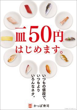 すし1皿一貫を税別50円で提供