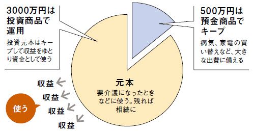とはいえ、「なんとかなる」程度では悠々自適な老後を過ごすことはできないし、重い介護状態になったときには介護施設への入居も考える必要がある。それらを考え合わせると、資産を取り崩さず、資産を運用しながら増えた分を使う、という方法をとるのが望ましい。