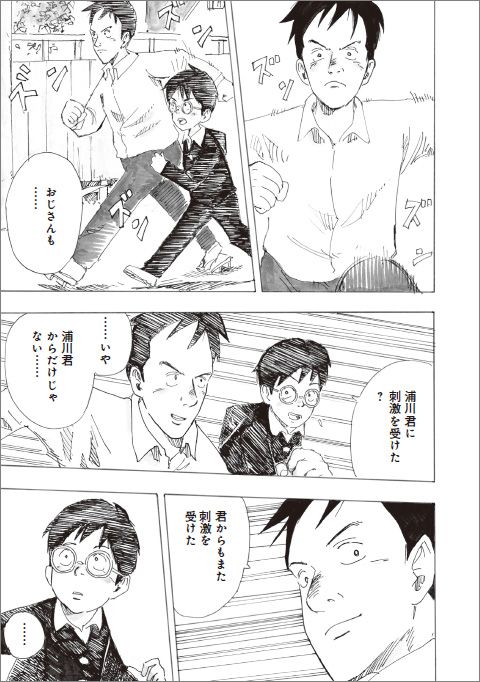 その象徴的なシーンが2人が町中を歩くシーンだ。例の浦川の家を訪ねた後、家業を手伝いながら、困難に負けず頑張っている同級生の姿に感動し、コペル君がいても立ってもいられなくなったのだ。原作ではコペル君が1人で歩いていくのだが、マンガでは2人で手を振りながらぐんぐん歩いていく。叔父さんが「君は浦川君の貧しさを知ったが、ばかにはしなかった。浦川君にしてあげられることを君なりにやった。そのことに刺激され、一緒に歩きたくなったんだ」と言いながら。