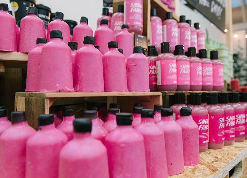 同社の2017年のクリスマスシーズンのテーマは「ネイキッド・クリスマス」。店頭にはカラフルなボトルが並んでいるようにみえるが、よくみると石鹸のようにボディソープやボディローションを固めたものだ。一連の商品はパッケージを必要としないため、同社では「ネイキッド」と呼んでいる。
