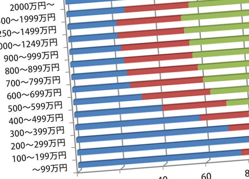 一方で年収が上がるにつれて「子供0人」の世帯は減少していき、年収1250万円を超えると再び上昇していきます。ただし、このデータは高齢者世帯を含む全世帯のもの。同じ高齢者でも、年金暮らしの世帯では所得が低く、高齢にしてなお経営者などをしている世帯では年収が高いですが、そのいずれも「子供0人」の世帯にカウントされているとも考えられます。また、所得が上がるにつれて子供が1人以上いる世帯の割合は増えています。