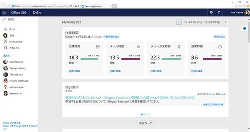 AIを使って仕事を「見える化」し、業務改善につなげる取り組みも進めています。クラウド上にある予定表やメール送受信のデータをAIで分析すると、自分がどの仕事にどれだけ時間を使っていたかや、やり取りの多い相手・少ない相手などが分かる。さらにAIが分析に基づく率直な助言もしてくれます。無駄な会議の削減やコラボレーションの強化は生産性向上の大きなポイントですが、この働き方の見える化によって、「会議の時間が想像以上に多い」「いつも同じ顔ぶれと仕事をしている」など社員が自らの課題を強く認識でき、改善に向けて話し合う風土もできてきました。