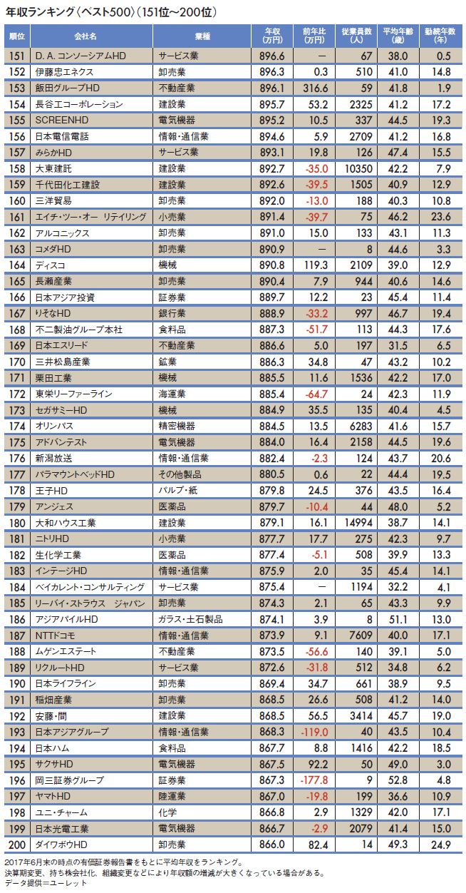 「平均年収ランキング」2017 #年収・給料 #上場企業 2017/12/07 9:00 #1 #2 #3 平均年収が高い"トップ500社"ランキング 平均年収「1000万円超」は75社 PRESIDENT Online 鎌田 正文 +フォロー ビジネスリサーチ・ジャパン代表 前ページ 1 … 5 6 7 … 12 次ページ 次ページ 1 … 5 6 7 … 12 関連記事 将来も食っていける職種・企業の「実名」 東京より幸せ「地方の給与1位企業」20社 高給なのに"クチコミ残念"会社ランキング ランキング 1位 2026年1月に「日本人の国」の終わりが始まる…高市早苗が保守を裏切って進める「民族置換」の衝撃シナリオ ランキングをもっと見る ビジネス #年収・給料 #上場企業 #M&A
