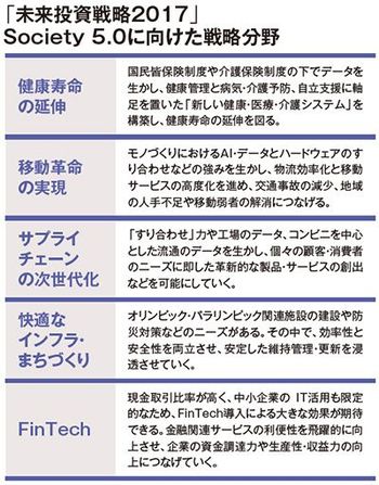 翻って現在、日本はどのような社会、国づくりを目指しているといえるのか。その方向性を知ることができる一つの資料が、政府による「未来投資戦略2017─Society 5.0の実現に向けた改革─」である。