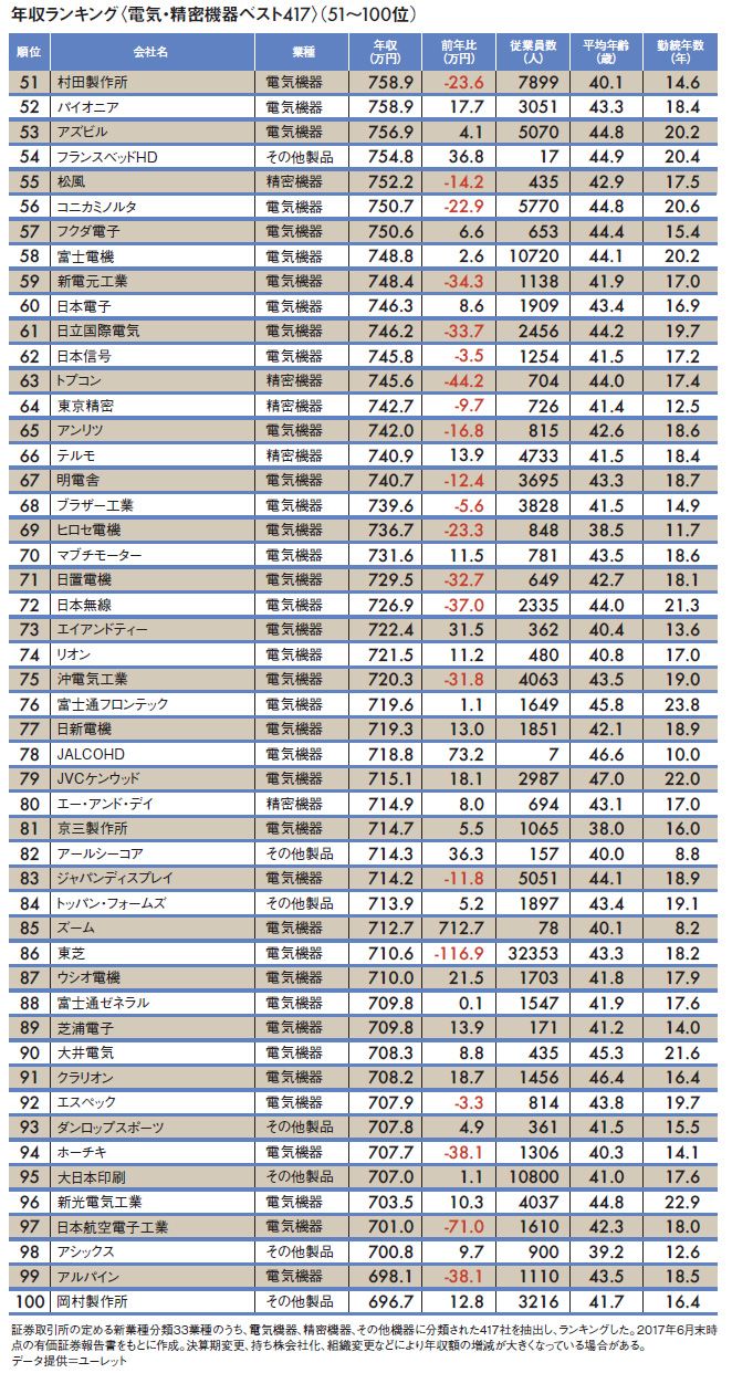 「平均年収ランキング」2017 #電機 #年収・給料 2017/12/27 9:00 #1 #2 #3 電機業界全417社「平均年収ランキング」 トップは1861万、ワーストは293万 PRESIDENT Online 溝上 憲文 +フォロー 人事ジャーナリスト 前ページ 1 2 3 4 5 … 11 次ページ 次ページ 1 2 3 4 5 … 11 関連記事 「自動車業界96社」平均年収ランキング 平均年収が高い"トップ500社"ランキング 高給なのに"クチコミ残念"会社ランキング ランキング 1位 一家4人、6畳一間に暮らす苦境の中でも…ノーベル賞受賞者の山中伸弥さんに、病気の父は医学部進学を薦めた ランキングをもっと見る マネー #電機 #年収・給料 #シャープ #ボーナス #パナソニック