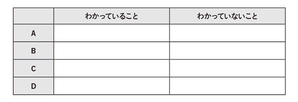 「わかっていること」と「わかっていないこと」を2軸の表に仕分けていく方法です。