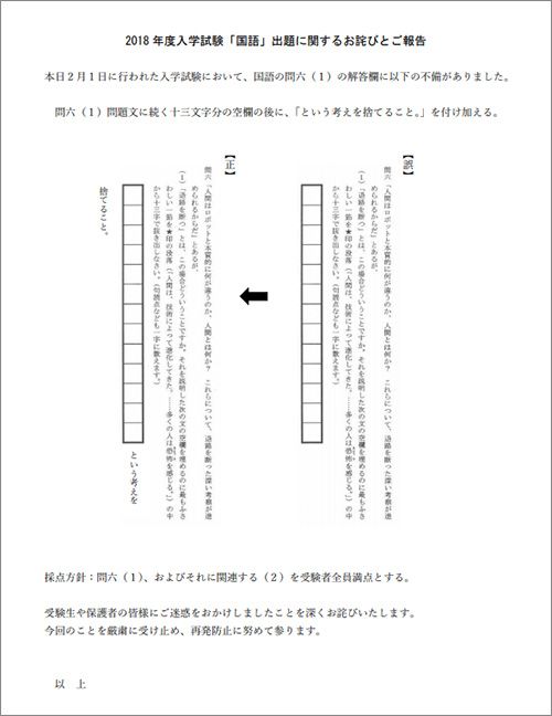 武蔵中のウェブサイトには、「出題に関するお詫びとご報告」が公開されていて、だれでも内容を確認することができる。