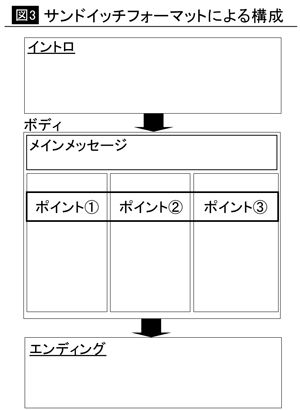 サンドイッチ・フォーマットは、「イントロダクション」+「ボディ」+「エンディング」の三部構成となっています(図3参照)。