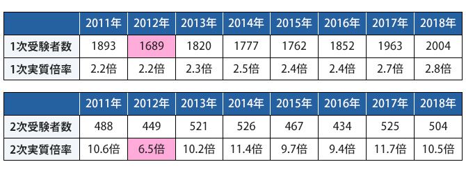 ▼震災翌年2012年だけが受験者数が極端に少ない
