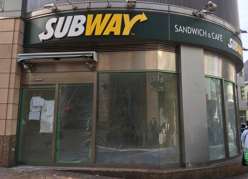 3月31日に閉店したサブウェイ三軒茶屋店。閉店直後には、店内の什器や備品を販売していた。(東京都世田谷区/編集部撮影)