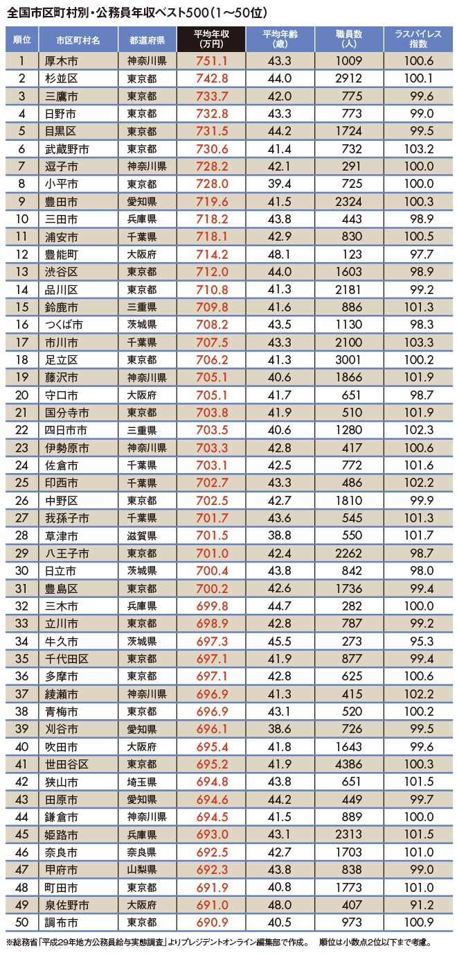 2018公務員給与ランキング #公務員 #年収・給料 2018/06/29 9:00 #1 #2 #3 "地方公務員年収ランキング"トップ500 2018年トップは「厚木市751万円」 PRESIDENT Online プレジデントオンライン編集部 +フォロー 前ページ 1 2 3 4 5 … 11 次ページ 次ページ 1 2 3 4 5 … 11 関連記事 電機業界全417社「平均年収ランキング」 「自動車業界96社」平均年収ランキング 平均年収が高い"トップ500社"ランキング ランキング 1位 一家4人、6畳一間に暮らす苦境の中でも…ノーベル賞受賞者の山中伸弥さんに、病気の父は医学部進学を薦めた ランキングをもっと見る マネー #公務員 #年収・給料