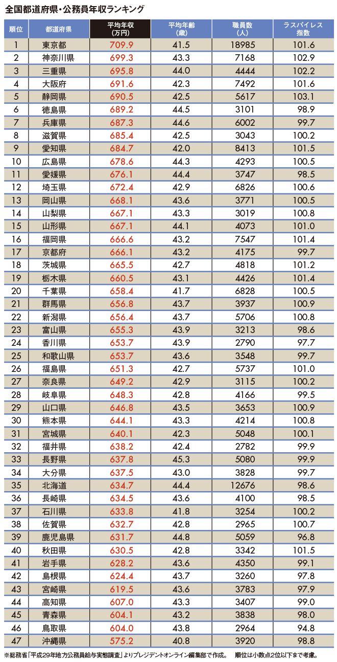 2018公務員給与ランキング #公務員 #年収 2018/07/17 9:00 #1 #2 #3 "地方公務員年収推計"都道府県ランキング 不動の1位東京都は「709.9万円」 PRESIDENT Online プレジデントオンライン編集部 +フォロー 前ページ 1 2 (図版作成=大橋昭一) 2017"地方公務員年収推計"都道府県ランキング 【関連記事】 "地方公務員年収ランキング"トップ500 地方公務員年収ランキングワースト500 電機業界全417社「平均年収ランキング」 「自動車業界96社」平均年収ランキング 平均年収が高い"トップ500社"ランキング 1 2 プレジデントオンライン編集部 関連記事 "地方公務員年収ランキング"トップ500 地方公務員年収ランキングワースト500 電機業界全417社「平均年収ランキング」 ランキング 1位 ジャムなのに「瓶」を使わず大ヒット…老舗のアヲハタが突き止めた"30~40代のジャム離れ"の意外な突破口 ランキングをもっと見る マネー #公務員 #年収 #地方自治体