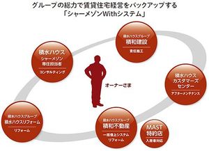 さらに、今年4月より、初期30年保証が終了したあとも、独自の「ユートラスシステム」により10年間の再保証が繰り返し受けられるようになった。耐久性が高く長寿命の建物を、点検・保証による裏付けでさらに長く支え続けるシステムだ。もちろんハード面だけでなく、経営や管理・運営のサポートも万全。積水ハウスグループ各社の連携による「シャーメゾンWithシステム」で、事業計画の立案から維持管理まで、賃貸住宅経営をトータルにバックアップする。入居者募集や家賃の集金、清掃などの日常業務はもちろん、市場の変化に応じたリフォームやリノベーションの提案も期待できる。