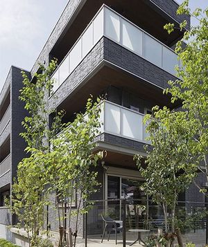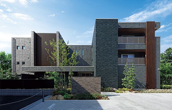 仙台市中心部にほど近い、閑静な住宅街に立つ積水ハウスの重量鉄骨賃貸マンション「ベレオ」の最新事例をご紹介しよう。この建物は会社経営者であるオーナーのオフィスも併用しており、生活感が表に現れない、堂々とした風格がある。黒を基調とした外観は、積水ハウスオリジナルの高性能外壁材に加え、天然御影石やタイルといった質感の異なる素材を組み合わせることで、豊かな表情を生み出している。