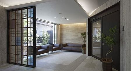 重厚な外観に対し、エントランスに入ると一転して明るく開放的なロビーが広がる。窓の外には坪庭の緑。こうした共用空間の豊かさも、暮らしの満足度につながっている。オーナーの願いは、何よりもまず「入居者に快適な暮らしを提供したい」ということ。間取りはゆったりした1LDKと2LDKを用意し、リッチなシングルから子育てファミリー、シニア層まで、多様なライフスタイルに対応できるようにした。