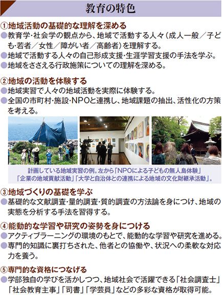 【鈴木】まずは基本知識として教育学、社会学、心理学などの視点から地域で活動する人々への理解を深めるとともに、地域行政や社会の仕組みを学び、地域というものを見る土台をつくります。さらに地域の実態を把握する調査の技法として、文献資料を読み解く技術、統計調査やインタビュー調査などを実施・分析する方法論を習得してもらう計画です。