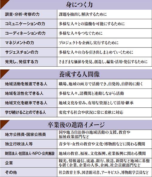 【鈴木】地域づくりでは他者との対話や議論を通して答えのない課題を解決していく力が欠かせません。そこで1年次から4年次までアクティブラーニングによる少人数の演習を実施。コミュニケーション力や実践力を磨きます。また、学芸員、司書、社会調査士、社会教育主事といった専門的な資格をカリキュラムの中で無理なく取得できるのもポイントでしょう。