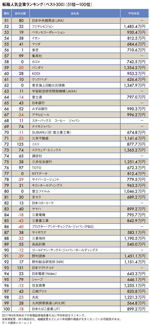 #転職 #ランキング 2018/07/18 9:00 「社会人が転職したい会社」トップ300社 LINE、メルカリら新興企業が台頭 PRESIDENT Online 佐藤 大介 +フォロー コンサルタント/編集者 前ページ 1 2 3 4 5 … 8 次ページ 次ページ 1 2 3 4 5 … 8 関連記事 2019年卒「就職人気企業」トップ50社 "地方公務員年収ランキング"トップ500 地方公務員年収ランキングワースト500 ランキング 1位 1回10分・室内でもできる…整形外科医が「姿勢も血流もよくなる」と勧める"肋骨ウォーキング"の効果【2026年1月BEST】 ランキングをもっと見る キャリア #転職 #ランキング #会社
