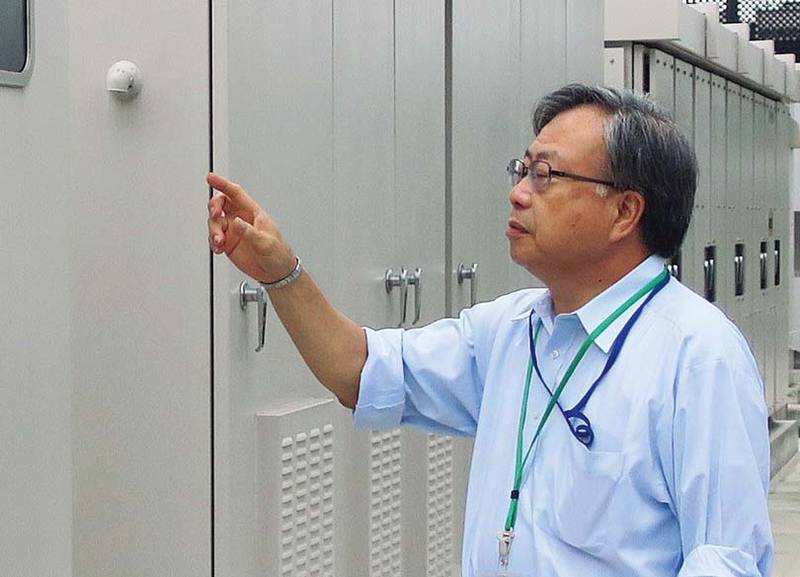 設備を点検する福田さん。省エネ対策による効果を定期的に測定し、データとして「見える化」する検証業務を得意としている。しかし「言うは易く、行うは難し」で、膨大なデータをエクセルに落とし込むだけでも大変な作業だ。