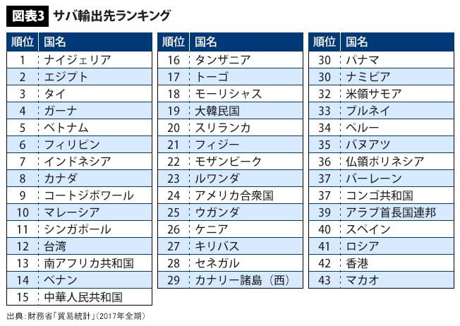 この日本近海で獲れたサバがどこに輸出されているか、ご存じだろうか。実はナイジェリアを筆頭にエジプト、ガーナなど約6割がアフリカ諸国なのだ。
