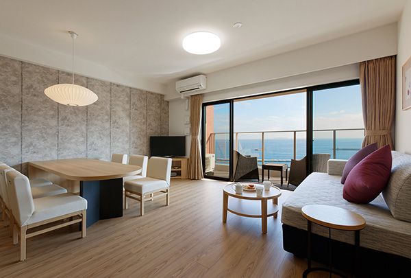 そんな日常とリゾートをつなぐ場所として最適なのが、昨年オープンした「東急バケーションズ熱海」である。JR熱海駅から徒歩6分という好立地で、新幹線なら東京から一時間足らずで行き来できる。余暇にゆったりと時を過ごすのに最適であり、仕事の合間に滞在しても不便はないだろう。