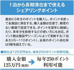 宿泊には、5年単位で購入する独自の「シェアリングポイント」が必要になる。「この仕組みで、常に自分らしく自由なバケーションライフが手に入ります」と金山社長は話す。