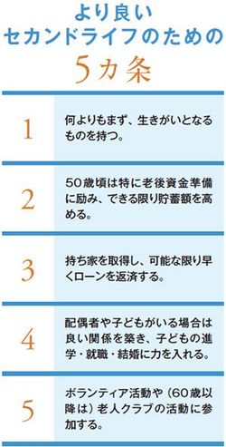 充実したセカンドライフを送るにあたり、“生きがい”と“お金”はまさに車の両輪。二つを結びつけて考えることで、現役世代がやるべきことが見えてきそうだ。かつて余生と呼ばれた時間は、“第2の人生”となった。その満足度を高められるのは、ほかの誰でもない、自分自身である。