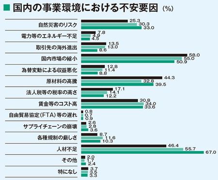 同調査によれば、「国内の事業環境における不安要因」「国内での事業活動における課題」は下図のとおりだ。近年、「人材不足」への不安が顕著に高まっている。求めている人材を確保できるかどうか──。これが多くの企業にとって、立地先の選定の際に検討すべき優先項目ということだ。今、自治体と地元の教育機関との間で連携協定などを結んでいる地域は少なくない。そうした情報もきちんと把握しておくことが求められる。