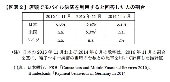 昨年6月に日本銀行が発表したレポート『モバイル決済の現状と課題』によると、中国都市部では消費者の98.3%がモバイル決済を利用している。一方、わが国での利用割合は6%程度と報告されている。このデータを額面通りに受け止めると、わが国はキャッシュレス決済の途上国と位置付けられよう。